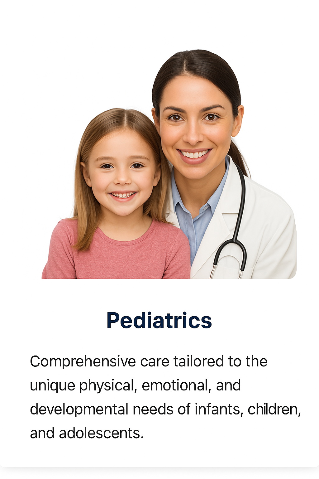 Comprehensive care for children from newborn to adolescence, specialized in child health and development.